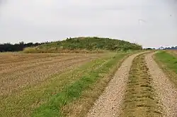 The hamlet is 650 yards (600 m) south of a deserted medieval village (DMV), not mentioned in the Domesday Book.[5] Grim's Mound, 650 yards west from the DMV, is a Bronze Age bowl barrow, 62 feet (19 m) in diameter and 9 feet (2.7 m) high. It contains archaeological items, including human remains, and is an ancient scheduled monument.[6]