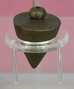 The groma (as standardized in the imperial Latin, sometimes croma, or gruma in the literature of the republican times)[1] was a surveying instrument used in the Roman Empire.[2] The groma allowed projecting right angles and straight lines and thus enabling the centuriation (setting up of a rectangular grid). It is the only Roman surveying tool with examples that survive to the present day.[3]