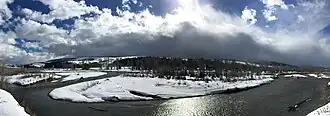 The Gros Ventre River (pronounced GROW-VAUNT) is a 74.6-mile-long (120.1 km)[1] tributary of the Snake River in the state of Wyoming, USA. During its short course, the river flows to the east, north, west, then southwest. It rises in the Gros Ventre Wilderness in western Wyoming, and joins the Snake River in the Jackson Hole valley. In 1925, the massive Gros Ventre landslide dammed the river and formed Lower Slide Lake. The natural dam collapsed in 1927, flooding the downstream town of Kelly, Wyoming. The river is noted for the excellent trout fishing along its length, where native Snake River Fine-spotted Cutthroat Trout average 12 to 16 inches (300 to 410 mm), with some to 20 inches (510 mm).