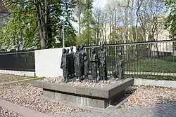 In 1941, Nazis established a collection point at Grosse Hamburger Strasse for Jews to be deported from the city. It became the main collection point in Berlin.[8] The school for boys and old age home were renovated for use by the Nazis. Jewish people were processed and sent to extermination camps or ghettos as part of The Holocaust.[7] They were forcefully taken from their homes and brought to this collection point.[7] More than 50,000 people were sent initially to Nazi concentration camps at Kaunas, Łódź, Minsk, Riga, and Theresienstadt. Jewish people were sent to death camps, like Auschwitz-Birkenau, after July 1942.[9]