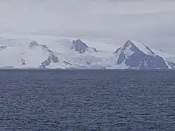 Gruev Cove from Bransfield Strait, with Parchevich Ridge on the left and Bogdan Ridge on the right.