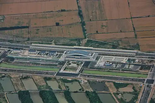 Guanyin Airport railway station is a railway station in Suining County, Xuzhou, Jiangsu, People's Republic of China. It is situated about 1.5 kilometres (0.93 mi) south of Xuzhou Guanyin Airport, and about 32 kilometres (20 mi) from the urban center of Xuzhou city. Passengers may reach the airport via a free shuttle bus.[1]