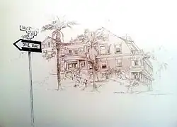 Hawthorn and First Avenue (1968) by Guillermo Acevedo. Pencil Drawing