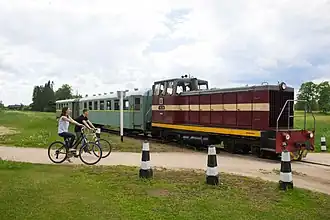 The Gulbene—Alūksne railway line is a narrow-gauge 750 mm railway that connects the cities of Gulbene and Alūksne . This is the only narrow-gauge railway line in the Baltic States with regular passenger services.[1] Nowadays, the line is operated by SIA "Gulbenes-Alūksnes bānītis". Until 2010, the line ran 3 pairs of trains per day, but from February 2010, the morning trip was cancelled.[2] On previously announced dates, the train travels with the steam locomotive "Ferdinands".[3] Since 2000, a Bānītis festival has been organized on the Gulbene–Alūksne line on the first weekend of September to promote the train.