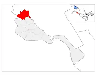 Gurlan District (Uzbek: Gurlan tumani, Гурлан тумани, گورلن تومنى) is a district of Xorazm Region in Uzbekistan. The capital lies at the town Gurlan.[1] It has an area of 440 km2 (170 sq mi)[2] and it had 149,500 inhabitants in 2021.[3] The district consists of 9 urban-type settlements (Gurlan, Chakkalar, Bozkala, Nurzamin, Nukus yop, Markaziy Guliston, Doʻsimbiy, Taxtakoʻpir, Yormish) and 9 rural communities.[1]