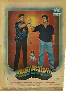 Soon-to-be released prisoners Raja and Babu meet Manohar, who has been sentenced to death. He tells them what happened: his sister Sumathi was abducted by a taxi driver abducts her, and raped to death by Muddu Krishna. Manohar files the case by grabbing the taxi driver. Muddu Krishna's elder brother Raja Shekaram, a tycoon, collaborates with his ally Jairam and corrupt Inspector Paramasivam by murdering the taxi driver and incriminating Manohar. Raja and Babu take an oath to shield Manohar and fracture his hand to postpone the death sentence. Soon after their release, they start up their play. Firstly, the duo digs up the evidence of Paramasivam’s lucre and confines him. With his aid, Raja posts himself as a Muddu Krishna‘s bodyguard. Babu crushes with Raja Shekaram’s daughter, Chitra. Besides, Raja loves Paramasivam’s daughter, Inspector Geeta. Startlingly, the heels seize Manohar’s parents with a pre-existing rivalry. They endeavor to revive his blackout father, Narayana Rao, for a pot of gold.