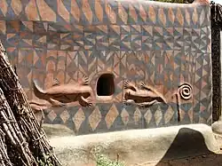 The Kassena people are known for their clay houses, which are built by the men. The women decorate the exteriors of the houses with geometric patterns.[1]