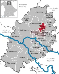 BayreuthKronach (district)Hof (district)Bayreuth (district)Lichtenfels (district)MainleusWonseesWirsbergUntersteinachTrebgastThurnauRugendorfNeuenmarktNeudrossenfeldKulmbachKödnitzKasendorfHimmelkronHarsdorfGuttenbergGrafengehaigPresseckStadtsteinachMarktschorgastMarktleugastLudwigschorgastKupferbergThuringia