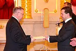 György Gilyán (born. 4 October 1951) is a Hungarian diplomat and the Ambassador Extraordinary and Plenipotentiary of Hungary to the Russian Federation.[1] He previously served as Hungary's State Secretary (2006–2008). During his time in that office, Hungary opened an embassy to Belarus.[2]