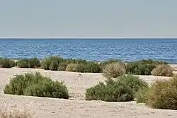 Gyascutus allenrolfeae is found only in alkali flats and desert lowlands within the western Sonoran Desert, with the species most frequently seen near the shores of the Salton Sea. Records also exist from near Yuma, Arizona and as far south as Bahia Santa Maria south of San Felipe in Baja California.[1] It is always found associated with its host plant, iodine bush.