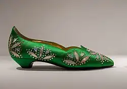 Shortly after the Second World War,[4] Arpels opened a small boutique in midtown Manhattan, selling contemporary versions of embroidered Arabian kaftans, intended to be worn as "bohemian eveningwear".[5] However, it was her "exquisitely made shoes" that would grow to be the mainstay of the business, and Arpels designed all her own shoes.[1][5] Regular customers included Jacqueline Kennedy Onassis, and Arpels became her friend and fashion advisor for over 20 years.[1][5] She made one shoe in each pair a quarter-inch higher to allow for the discrepancy in the lengths of Jackie's legs.[4]