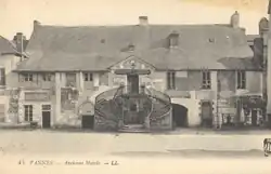 The first town hall in Vannes was an ancient building, previously used as a chambre des comptes (chamber of accounts), on the Place des Lices (now place Lucien Laroche) dating back to the 15th century. In 1560, Francis II, agreed to give the building to the aldermen of the town.[2][3] Designed in a typical Breton style, it was a modest two storey building with a grand external staircase, in the form of a pair of curving semi-circles, leading up to the first-floor doorway, with a pediment above.[4][a] There was also a tall tower which was so unstable that it had to be demolished in 1860.[6]