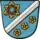The coat of arms was approved in December 1979 by the State Archive in Darmstadt, and was given its form by Bad Nauheim heraldic artist Heinz Ritt after the community’s guidelines. The ten dolmens symbolize the ten formerly self-administering communities, and the sides (stripes down each side) and the fess (horizontal stripe) form a red uppercase H, the new (in 1972) greater community’s initial letter. The H’s crossbar also stands for the Hühnerstraße (road), which splits the community into four constituent communities on one side and six on the other.