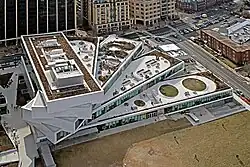 12. ^ Maake, Katishi (October 25, 2019). "H-B Woodlawn opens in Rosslyn in BIG-designed, $100M building". Washington Business Journal. Archived from the original on September 13, 2020. Retrieved September 13, 2020.