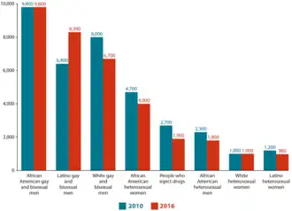 - ^ "HIV and African Americans | Race/Ethnicity | HIV by Group | HIV/AIDS | CDC". www.cdc.gov. March 19, 2019. Archived from the original on August 8, 2019. Retrieved July 10, 2019.