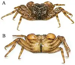 2. ^ "New species of terrestrial crab found climbing on trees in Hong Kong". Retrieved 2017-03-23.