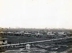 Factory laborers quarters, with cane areas of Hacienda Luisita in background, 1929
