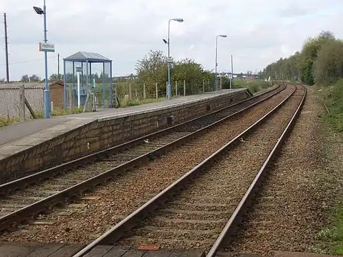 Haddiscoe railway station (formerly Haddiscoe Low Level) is a stop on the Wherry Lines in Norfolk, England. It named after the village of Haddiscoe, some 2 miles (3.2 km) away; however, the village of St Olaves, sited on the other side of the River Waveney, is closer.[1] The station is 16 miles 11 chains (26 km) down the line from Norwich, on the route to Lowestoft; it is situated between Reedham and Somerleyton. Its three-letter station code is HAD.