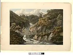 The estate became famous in the late 18th century when its owner, Thomas Johnes (1748-1816), developed it as a showpiece of the Picturesque idea of landscape; the estate and the Gothic house were the subject of many descriptions and images produced by contemporary visitors. The history of the estate is the subject of several books, most notably Peacocks in Paradise by Elisabeth Inglis-Jones,[4] and the Hafod Landscape by Jennifer Macve.[5]