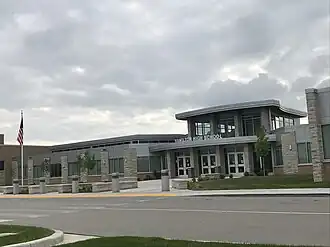 In 1964, more classrooms were added, and again in 1970; in 1996, a science wing was added; in 2004, the 35,000-square-foot Hamilton Fine Arts Center was added.[5] In 2006, a federal grant funded a fitness center with over 35 machines. In 2008, the gym was redone with new bleachers, and the floor was refurbished. In 2012, a video scoreboard was added. In 2014 an indoor training facility was finished,[6] and in 2016, a wing was added to relocate the history classrooms and reorganize the rest of the classrooms. In 2019, the new communication arts wing was added as well as an extension to the administrative and district offices, and most recently the expansion of the cafeteria in 2025.