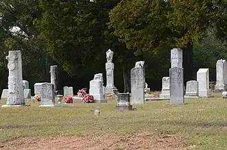 Hampton Cemetery is a historic cemetery in downtown Hampton, Arkansas. The 0.5-acre (0.20 ha) cemetery is located near the center of town, not far from the Calhoun County Courthouse, and immediately adjacent to the Hampton Church of Christ. The cemetery is said to have been used as a burying ground since the first days of settlement in the area (which began in 1848), although the first marked grave is dated 1878. The town decided in 1920 to stop allowing burials other than those already reserved, and the last burial took place in the cemetery in 1969. There are estimated to be 139 burials in the cemetery, although only 103 are marked. Most of the marked graves are dated between 1890 and 1920.[2]