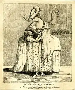 The sister of William Humphrey, Hannah Humphrey first started selling prints from her brother's premises.[3] She struck out on her own in 1778 or 1779, when she first established a printshop in St Martin's Lane.[4] Several woman print sellers ran successful businesses in 18th-century London—for example, Mary Darly, Susan Vivares, and Elizabeth Jackson. Humphrey was preeminent among them and became one of the top two print sellers in London, the other one being Samuel Fores. Her shop in St James was visited by a fashionable clientele and had a large stock of social and political caricature, including caricature portraits of leading society figures. Notable artists she published beside Gillray included Thomas Rowlandson and James Sayers.