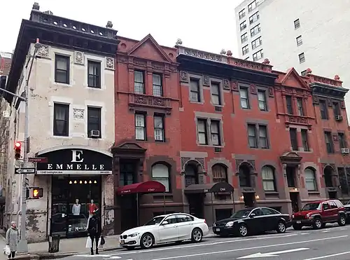 The Hardenberg/Rhinelander Historic District is a small historic district in the Carnegie Hill neighborhood of the Upper East Side of Manhattan, New York City. It was created by the New York City Landmarks Preservation Commission on May 5, 1998, and consists of six brick, brownstone and terra cotta Northern Renaissance Revival rowhouses along Lexington Avenue between East 89th and 90th Streets, and one apartment building, referred to as "French Flats" at the time, on East 89th Street. All the buildings were constructed in 1888–1889.