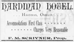 - ^ "Hardman, Oregon | Heppner Chamber of Commerce". www.heppnerchamber.com. Retrieved November 9, 2017.