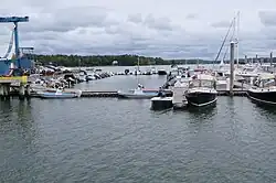 Multiple marinas and boatyards operate in the Harraseeket with sailboats and power boats moored in an extensive anchorage in the lower reaches of the estuary.[17] Other enterprises include commercial lobster boats, an island ferry, tour boats and other working boats.[18]
