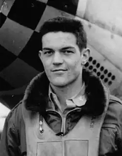 During his first missions, flown in a P-47 Thunderbolt he named Anne, he showed himself to have some ability and downed three Bf 109 fighters, two during the first mission in which he engaged in combat. Returning in March 1945 after a period of leave, he was assigned a new P-51D Mustang. At the time aircraft names were under heavy scrutiny due to Nazi propaganda over an American bomber named Murder Inc. He named the plane after the scientific name of the hoopoeUpupa epops—for the name's "silliness". In the P-51, he shot down two more German aircraft—including one chance strike at a Me 262 jet fighter from long distance—and those five victories qualified him as a fighter ace. Upupa Epops is now restored as close as possible to its World War II condition, as part of the Flying Heritage Collection.[2]