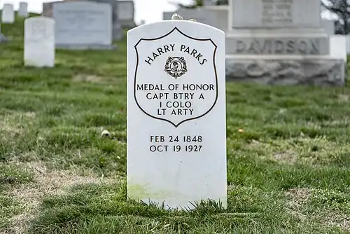 Parks again served during the Spanish–American War, rising to the rank of captain and serving with Battery A of the 1st Colorado Light Artillery. He died at age 79 and was buried in Arlington National Cemetery, Arlington County, Virginia.