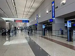 At the onset of the COVID-19 pandemic in March 2020, the control tower was closed for several days after a controller tested positive for the virus, leading to many delays and cancellations.[70] The following month, the decrease in traffic caused by the pandemic prompted the closure of all the gates in Concourse B and Terminal 3.[71] Concourse B reopened in the summer, and the E gates in Terminal 3 subsequently reopened in July 2021.[72]