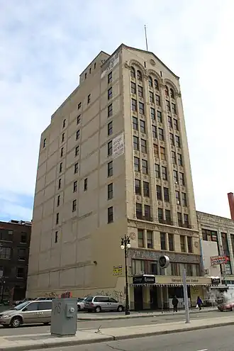 The Harvard Square Centre is a building located at 1344–1346 Broadway Street in Downtown Detroit, within the Broadway Avenue Historic District and next to the Merchants Building. It was built in 1925 and stands at 12 floors in height, designed in the Beaux-Arts architectural style with Romanesque accents. It is currently unused. The current plans for the building calls for a renovation that will include 21 loft apartments. Heritage National Investment has proposed converting the building into 21 residential loft apartments.