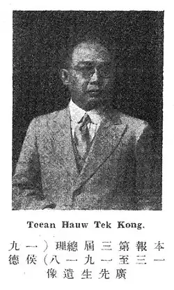 12. ^ a b c "Hauw Tek Kong †". www.delpher.nl (in Dutch). 1928-04-10.