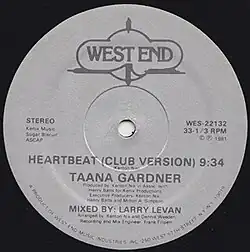 "Heartbeat" is a song by American disco singer Taana Gardner, released in 1981 by West End Records. It was arranged by Dennis Weeden and Kenton Nix, and released with the more famous club mix created by Larry Levan. The single peaked at No. 10 on the US Billboard R&B Singles chart and No. 6 on the Billboard Hot Dance Club Play chart.[3] In 1998, it had sold over 800,000 copies.[4] In 2022, Rolling Stone ranked "Heartbeat" number 63 in their list of the "200 Greatest Dance Songs of All Time".[5]