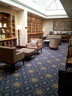 Visual art exhibits that change seasonally can be viewed on the mezzanine. These exhibits are curated by Portland's Elizabeth Leach Gallery. The Heathman also has a library on the mezzanine level containing a large collection of books signed by authors who have been guests at the hotel.[17]