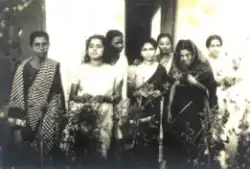 Helena Khan (fourth from the right) among other students in front of the Lady Brabourne College (1948)