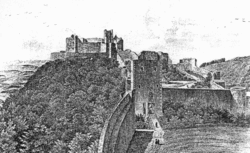 The castle was probably established at the end of the 13th century by the marauding knight Friduš (or Helfrid) of Linava who used the castle as a base for robbing merchants during the unsettled times that followed the murder of Wenceslaus III in 1306. As Friduš's escapades could not be ignored, young King John of Bohemia sent his troops to deal with the bandits. Although Friduš perished, he gave his name to the castle.[1] At the turn of the 14th century the lords of Kravaře acquired it, after which it became the centre of their extensive estates. During the 14th and the early 15th century the castle was remodelled as a Gothic fortress. The Lords of Kravaře owned the castle until 1447, and it was then held mostly by a number of Moravian noble families, among them the Sovinec family, the Kostek of Postupice family, the Pernštejn family, the Ludanice and the Bruntálský of Vrbno family.[2] This unassailable structure withstood a number of sieges. It was an important Hussite bastion against the German catholic town of Olomouc and also acted in support of King George of Poděbrady against the Hungarian King Matthias Corvinus who was unable to defeat the king's troops and capture the fortress in 1468.[2] Not even the Swedes and the Danes succeeded in capturing it during the Thirty Years' War.