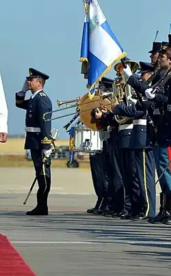 The band provides musical support to various events of military, social, cultural, religious, and recreational nature.[1] The responsibilities of the band includes the welcoming of foreign heads of state and government, supporting ceremonies at the Presidential Mansion and Tomb of the Unknown Soldier and in the receptions of military leaders of the air force. Every three years the band participates in a parade on 5th Avenue in New York in honour of Greek Independence Day on March 25. Between 2011 and 2012, the band (then under the leadership of Major Vasileios Kounadis), also competed in the Spasskaya Tower Military Music Festival and Tattoo in Moscow, Russia.[3]