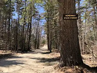 Hemenway State Forest is a 2,106-acre (852 ha) state forest in Tamworth, New Hampshire. It includes the Big Pines Natural Area, an area of large white pine trees, including one of New Hampshire's largest, accessible via a parking area and loop trail off Route 113A. The trail also crosses the Swift River with a wooden pedestrian bridge. A spur trail connects to an observation tower atop Great Hill.[1]