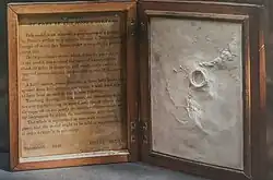 In 1849 he constructed a model of the Moon's surface showing the lunar crater Eratosthenes. The model was based on observations made by Blunt with his reflecting telescope from his home in Shrewsbury. A full description of the model's presentation to the British Association for the Advancement of Science is published in the Report for their Meeting held in Birmingham during September 1849.[5] One of several surviving models is held by the Science Museum, London and was donated to them by the Commissioners of the Great Exhibition. The model was displayed in 1851 at The Great Exhibition in London and is described in the exhibition catalogue.[6]