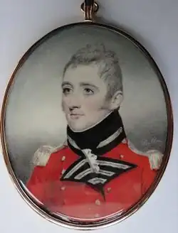 Riddell was commissioned in 1798 and took part in the Battle of Copenhagen in August 1807 during the Napoleonic Wars.[1] He became a major in 50th Regiment of Foot on 12 December 1807 and transferred to the 79th Regiment of Foot on 21 April 1808.[2] He became permanent assistant at the Quartermaster General's Department on 4 January 1810 and then went to Spain as Assistant Quartermaster General on the staff in November 1810.[2] He was present at the crossing of the River Bidasoa in 1813.[1]