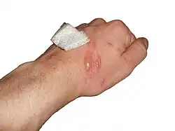 All parts of H. sosnowskyi contain phototoxic furanocoumarins.[11] It is dangerous for humans because even small drops of the plant's juice cause skin photosensitivity and burns.[12] The plant is less dangerous for animals that have thick hair to protect them from the sun.