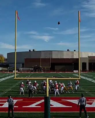 The artificial turf field runs east-west at an approximate elevation of 1,600 feet (490 m) above sea level; the grandstand and press box are along the north sideline.