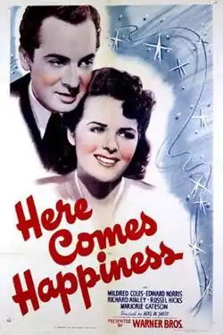 Here Comes Happiness is a 1941 American comedy film directed by Noel M. Smith and written by Charles L. Tedford. The film stars Mildred Coles, Edward Norris, Richard Ainley, Russell Hicks, Marjorie Gateson and John Ridgely. The film was released by Warner Bros. on March 15, 1941.[1][2]