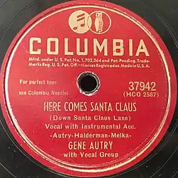 - ^ a b "Columbia matrix HCO2587. Here comes Santa Claus (down Santa Claus Lane) / Gene Autry". Discography of American Historical Recordings. University of California, Santa Barbara Library. Retrieved September 14, 2024.