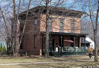 It is a two-story brick Italianate-style house on a stone foundation.[2]