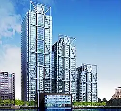 Heron Quays West is a skyscraper development under construction in Canary Wharf, London. The plan is for two large skyscrapers connected by a large atrium at the base, not unlike the Riverside South development. The site is at the south west of the Canary Wharf site off Bank Street. Developers for the project are the Canary Wharf Group.