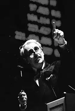 In 1978, BMW asked Andy Warhol to paint a black BMW 320i for the 1978 24 Hours of Le Mans, but the model was changed and failed to qualify for the race.[6] In 1979, Warhol painted a BMW M1 Group 4 racing version that was more successful at the 1979 24 Hours of Le Mans, with Poulain, Manfred Winkelhock and Marcel Mignot behind the wheel.[7] They completed 288 laps at the Sarthe circuit, coming in 6th overall, and 2nd in their class.[7] During the course of that race the car made contact with other cars several times. Warhol had painted spare bumpers and body panels, which were necessary.[8]