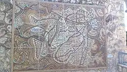 Mosaic by Naomi Henrik 1957 : "the mountains surround Jerusalem"